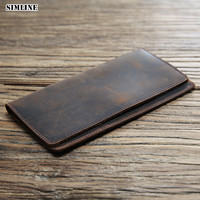 SIMLINE Genuine Leather Wallet For Men Vintage Crazy Horse Handmade Long Bifold Slim Thin Men’s Purse With ID Card Holder Slot