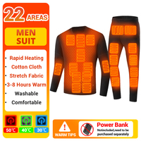 28 Areas Winter Heated Thermal Underwear Sets Skiing Heating Jacket USB Electric Men Warm Heating Clothing Top Pants Hiking