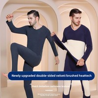Men Winter Sleeping Pajama Men’s Velvet Thermal Underwear Set Velvet Thickened Self-heating Plus Patch Winter Long Johns