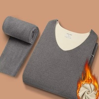 V-neck Seamless Thermal Underwear Set Men’s Thickened Velvet Heating Temperature Autumn Clothes Long Johns Bottoming Winter $17.77