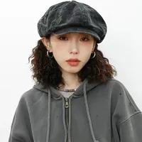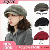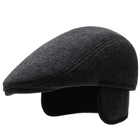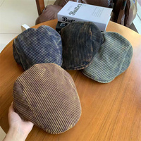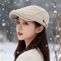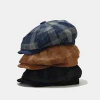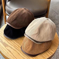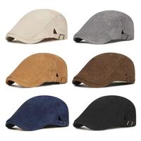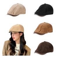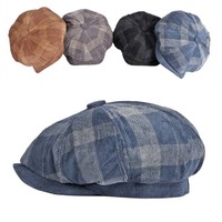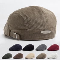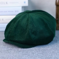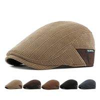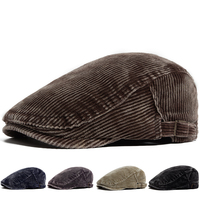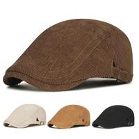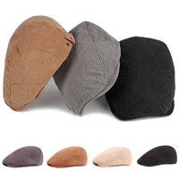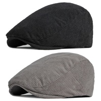 Men Newsboy Cap Corduroy Winter Warmth Beret Caps Painter Cap – Black