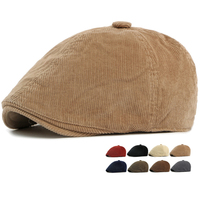 2025 New Men Berets Vintage Corduroy Autumn Winter Soft Flat Top Beanies Casual Newsboy Cap Unisex Peak Cap Chapeau Homme $4.70