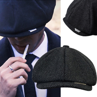 Men Newsboy Hats Thick Autumn Winter Vintage Herringbone Octagon Cap Casual knitted Berets Gatsby Flat Hat Color Matching Cap $9.94