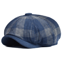 New Arrival Men Hats Winter Vintage Plaid Thick Beret Hat Corduroy Newsboy Cap Men England Gatsby Retro Hat Driver Flat Cap $6.38
