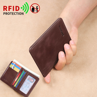 Genuine Leather Mens Wallets Slim Thin RFID Blocking Card Holder Anti Magnetic Card Protection Credit Card Cover Man