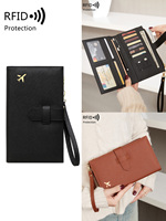 New Women Wallet RFID Blocking Secure Card Holder Multi-Functional Man Travel Wallets Plane Ticket Phone Zipper Bag Coin Purse
