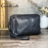 CONTACT’S RFID Genuine Leather Handbag Men Retro Portable Quality 6 Card Slots Phone Clutch Bag Travel Business Work Wallet
