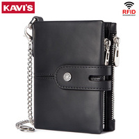 KAVI’S Men’s RFID Blocking Leather Wallet Anti-Lose Chain Multi-Compartment Zipper Pockets Secure Stylish Money Bag