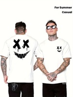 Men Fun Summer Smile Expression Pattern Men’s Creative Top Casual Short-sleeved Round-neck T-shirt Summer Outdoor Men’s Clothing $6.66