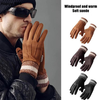 Men’s Cycling Gloves Suede Warm Winter Autumn Driving Fleece Gloves Touch-Screen Soft Flip-Top Windproof Run Anti-Slip Gloves