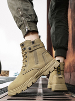 Winter Men’s High-Top Ankle Boots Thick-Soled Outdoor Fleece Lined Warm Work Protection Cotton Shoes Anti-Slip Snow Boots