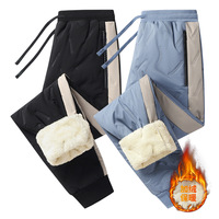 Men Winter Warm Pant Thicken Waterproof Down Cotton Lined Casual Sport Pants Joggers Trousers Cotton-padded Solid Lace-up Pant