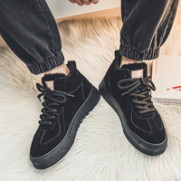 Winter Fleece Lined Men’s Cotton Shoes Warm High Top Flat Sole Lace Up Casual Skate Shoe Anti Slip Snow Boots Korean Style