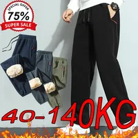 8XL Men’s Down Pants Plus Size Winter Plus Velvet Thick Loose Cotton Pants Big Size Solid Color Warm Lamb Down Casual Sweatpants $31.37