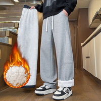 Heavy sheep wool blend and fleece extra thick lock warm casual sweatpants men’s loose straight leg plus size tracksuit pants $28.74