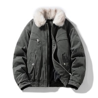 2025 Man Down Coat Winter Vintage Long Sleeve Pocket Zipper Male Cargo Jacket Thicken Warm Fur Stand Collar Loose Men Outerwear $63.29