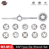Hampton 6pcs/8pcs/11pcs Thread Die Wrench Set M3 M4 M5 M6 M7 M8 M10 M12 Metric Screw Die Adjustable Hand Tools Plug Taps