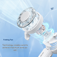 Folding Mini Cooling Air Fan Mobile Phone Holder Power Bank 3000mAh USB Rechargeable Cooling Handheld Desktop Fan with Lanyard