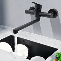 Modern Black Wall Mounted Faucet Stainless Steel 360 Swivel Kitchen Mixer Tap Faucet Sink Faucet Balcony Wash Basin Tap