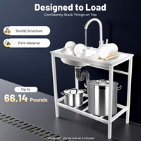 201 Stainless Steel Kitchen Sink Freestanding Modern Brushed 90*50cm Drain Large Capacity 150kg Load Faucet Included