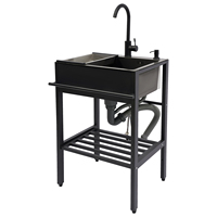 55×45 Freestanding Commercial Stainless Steel Kitchen Sink Set with 360 Rotating Faucet Black Modern Design for Restaurant Home