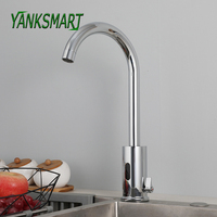 YANKSMART 360 Swivel Kitchen Faucet Modern Brass Sensor Sink Faucets Chrome Hot Cold Mixer Taps With AC/DC Battery Control Box