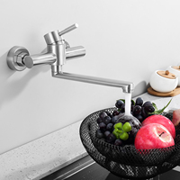 Modern Wall Mounted Bathroom Kitchen Faucet Dual Handle Hot and Cold Water Tap Sink Mixer Tap 360 Swivel Long Spout Kitchen