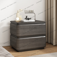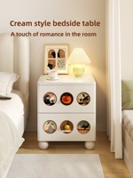 Cream wind bedside table simple modern small bedroom bedside table light luxury solid wood leather storage cabinet free $166.41