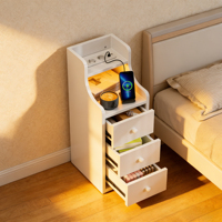 Narrow Smart Nightstands 3-Tier Solid Wood Bedside Cabinet Luxury Bedroom Storage Minimalist End Table with Charging Station $43.26