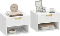 Floating Nightstands Set of 2, Modern Wall Mounted Bedside Tables with Fluted Drawer and Open Shelf for Bedroom, White $68.98
