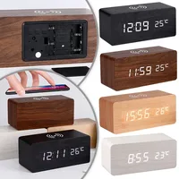 Alarm Clock LED Digital Wooden USB/AAA Powered Table Watch with Temperature Wireless Charging Electronic Desk Clocks $7.97