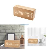 Alarm Clock LED Wooden Watch Table Voice Control Digital Wood Despertador USB/AAA Powered Electronic Desktop Clocks $4.32