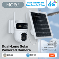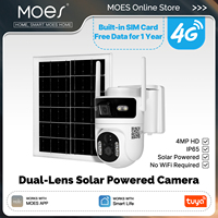 MOES Tuya Smart 4G Dual Lens Camera Solar Power Wireless PTZ Bullet 2 in1 4MP Panel IP65 Outdoor APP Monitoring Motion Detection $165.87