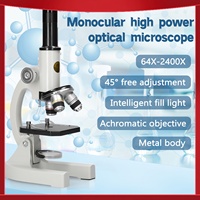 Monocular Digital Optical Microscope 64X-2400X with Adjustable Zoom Phone Holder Design Fill Light Complete Experimental Equipment for Science Education Biology Experiment