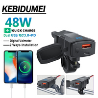 Motorcycle Charger SAE to USB Adapter Dual USB Fast Charger 12V Voltmeter with On/Off Power Switch for Phone GPS Tablet – Red