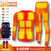 Winter Heated Underwear Set USB Battery Powered Smart Phone APP Control Temperature Motorcycle Jacket Suit Ski Thermal Suit $71.47