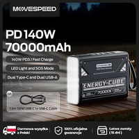 MOVESPEED 140W Power Bank 70000mAh PD3.1 Fast Charge Power Station Portable External Battery Charger for Laptop Camping Outdoor $128.91