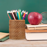 2Pcs Woven Pencil Holder for Desk Wooden Pen Organizer with Large Capacity Multi-Functional Desktop Storage for Office Home