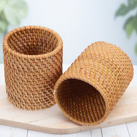 2Pcs Vintage Style Woven Pen Holders Wooden Pencil Organizer for Desk Multi-Functional Desktop Storage Box Home Office Use