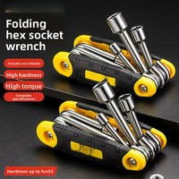Portable Socket Wrench Set Multi-Functional Folding Hex Key Kit Universal Heavy-Duty Hand Tools for Home &Automotive Repair Jobs
