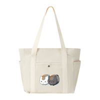 Cute Cats Playful Feline Duo Art Design Canvas Multi-Pocket Shoulder Bag Practical Grab-and-Go Shopping Bag $10.82