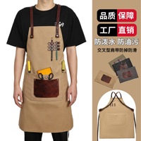 Multi-functional Waterproof Cafe Apron with Pocket Wear-resistant Canvas Apron Unisex Split Skirt Design Kitchen Apron Studio $9.85