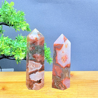 Natural Gemstone Pink Agate Geode Hexagonal Crystal Tower Obelisk Reiki Healing Stone Magic Wand Home Decor Feng Shui Gift