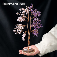 Natural Gemstone Healing Crystal Lovers Money Tree on Agate Base Feng Shui Crystals for Home Office Desk Decorations