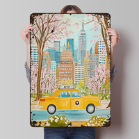 NYC New York Taxi Watercolor Metal Poster Custom Wall Art Retro Vintage Tinplate Signs for Man Cave Home Decoration Luxury House