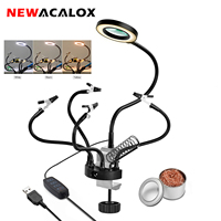 NEWACALOX LED 5X Magnifier USB Lamp Table Clamp Soldering Helping Third Hand Soldering Station 2pcs Flexible Arms Welding Tool