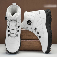Men Women Rotating Buckle Fleece Lined Snow Boots Waterproof Non-Slip High-Top Hiking Shoes Wear-Resistant Outdoor Travel Boots $12.35