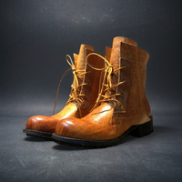 American Retro Genuine Leather Motorcycle Boots Men High Top Shoes Thick Sole Outdoor Casual Non-slip Wear-resistant Work Boots $240.71