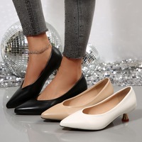 Soft Leather Stiletto Single Shoes Fashion Pointed Toe Shallow Mouth Slip-on Non-Slip Wear-Resistant Low Top Shoes $13.63