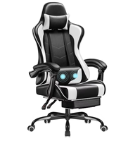 Gaming Chair Footrest and Massage Lumbar Support,Computer Chair Height Adjustable with Swivel Seat and Headrest White